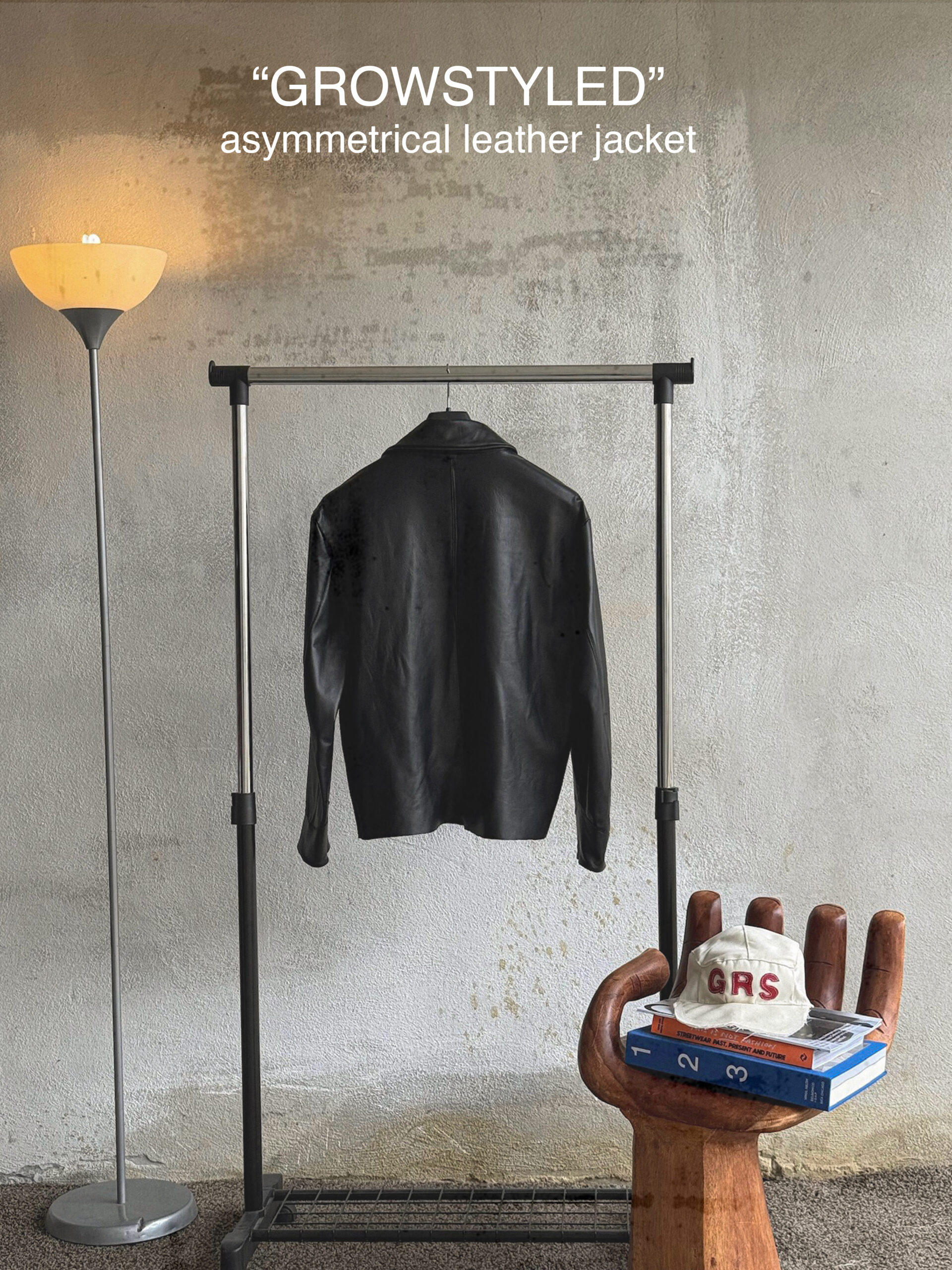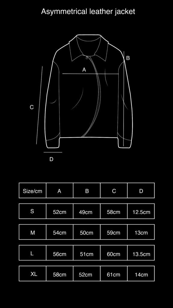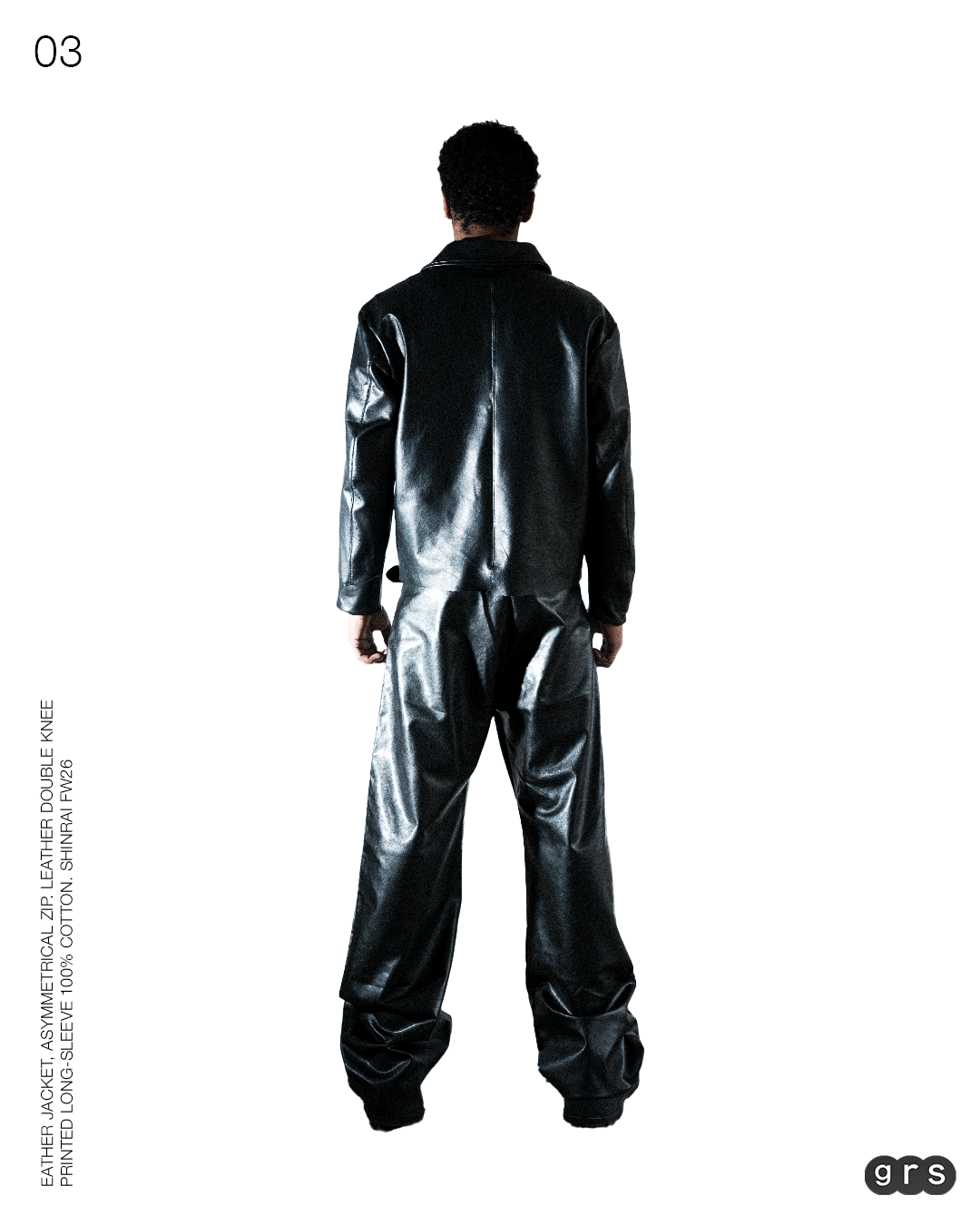 ENG: A piece that treats leather as a living material — one that unites structure and fluidity in an expression of essential elegance. The Asymmetrical Leather Jacket emerges from the encounter between contemporary design and artisanal savoir-faire, embodying a refined yet assertive character.
