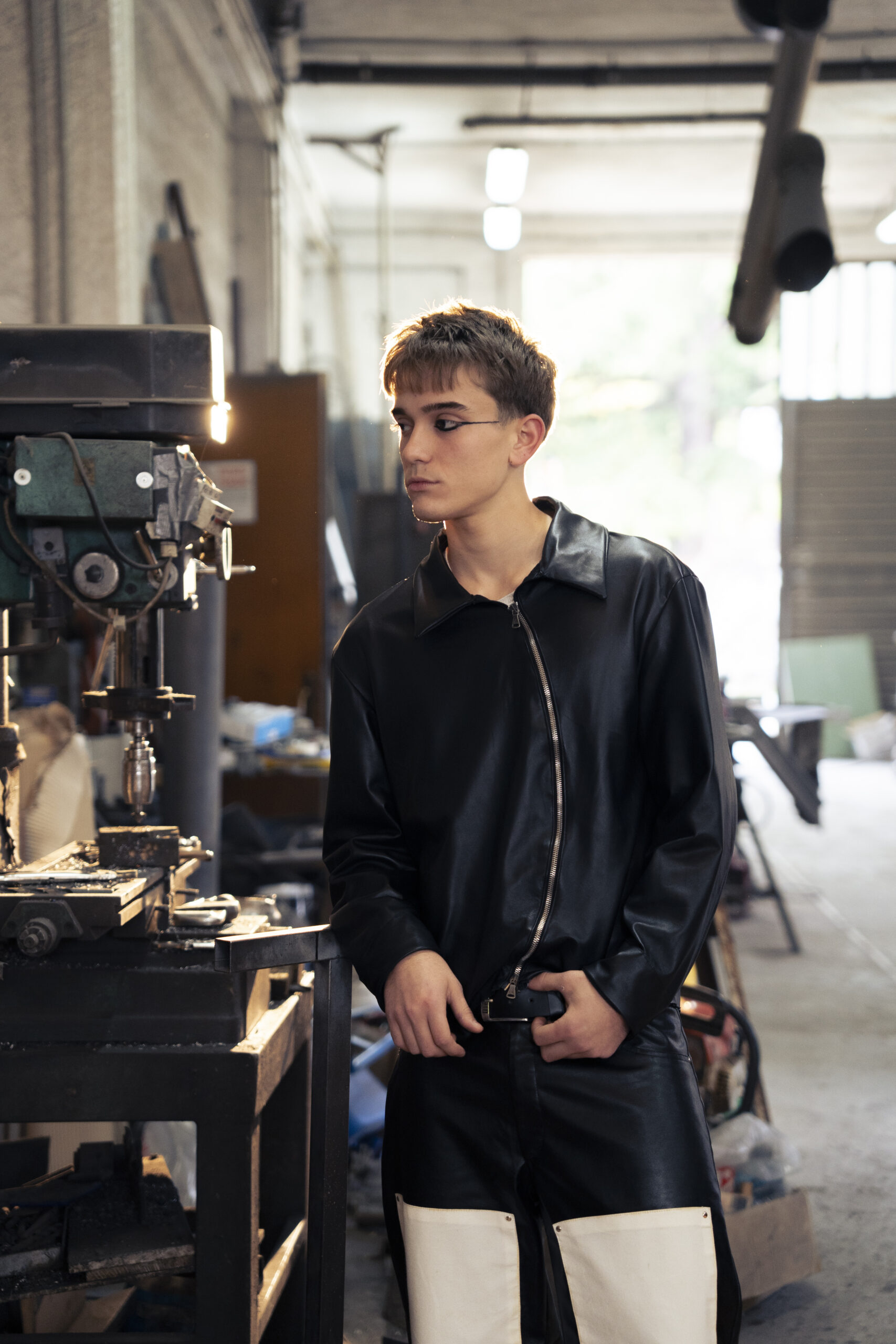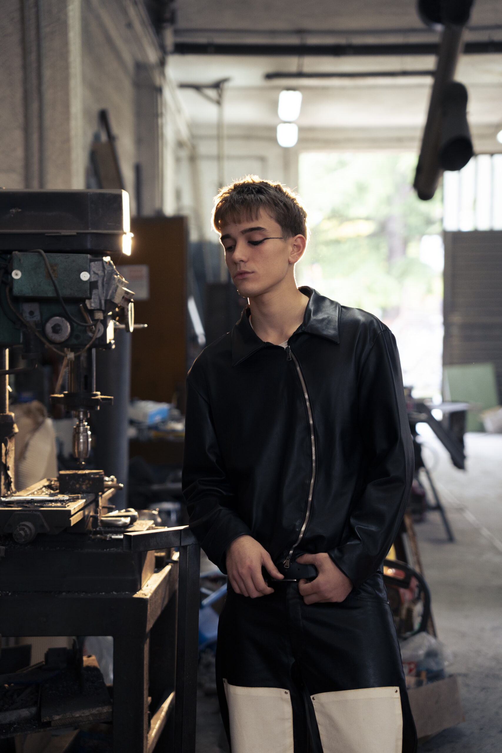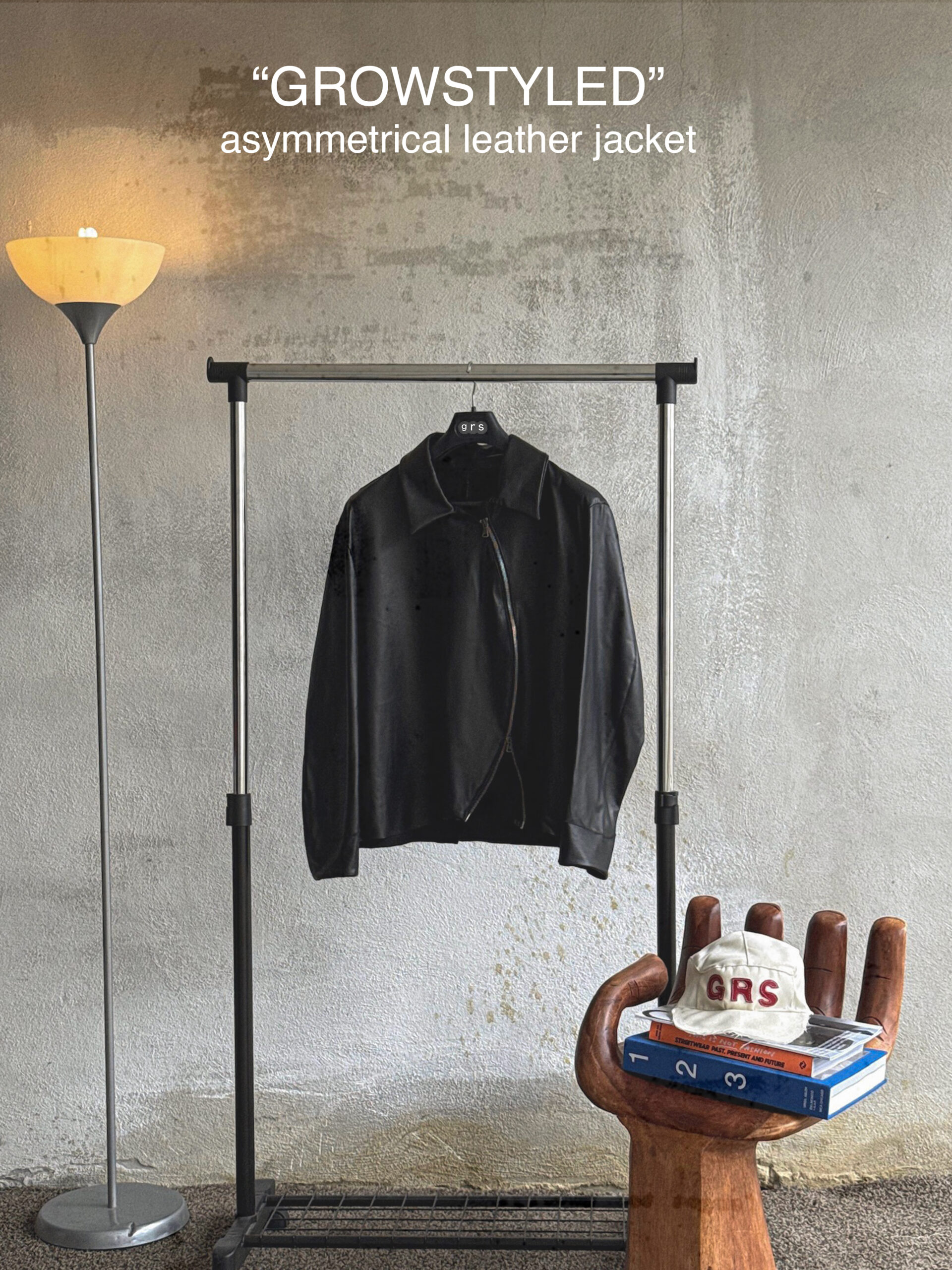 ENG: A piece that treats leather as a living material — one that unites structure and fluidity in an expression of essential elegance. The Asymmetrical Leather Jacket emerges from the encounter between contemporary design and artisanal savoir-faire, embodying a refined yet assertive character.