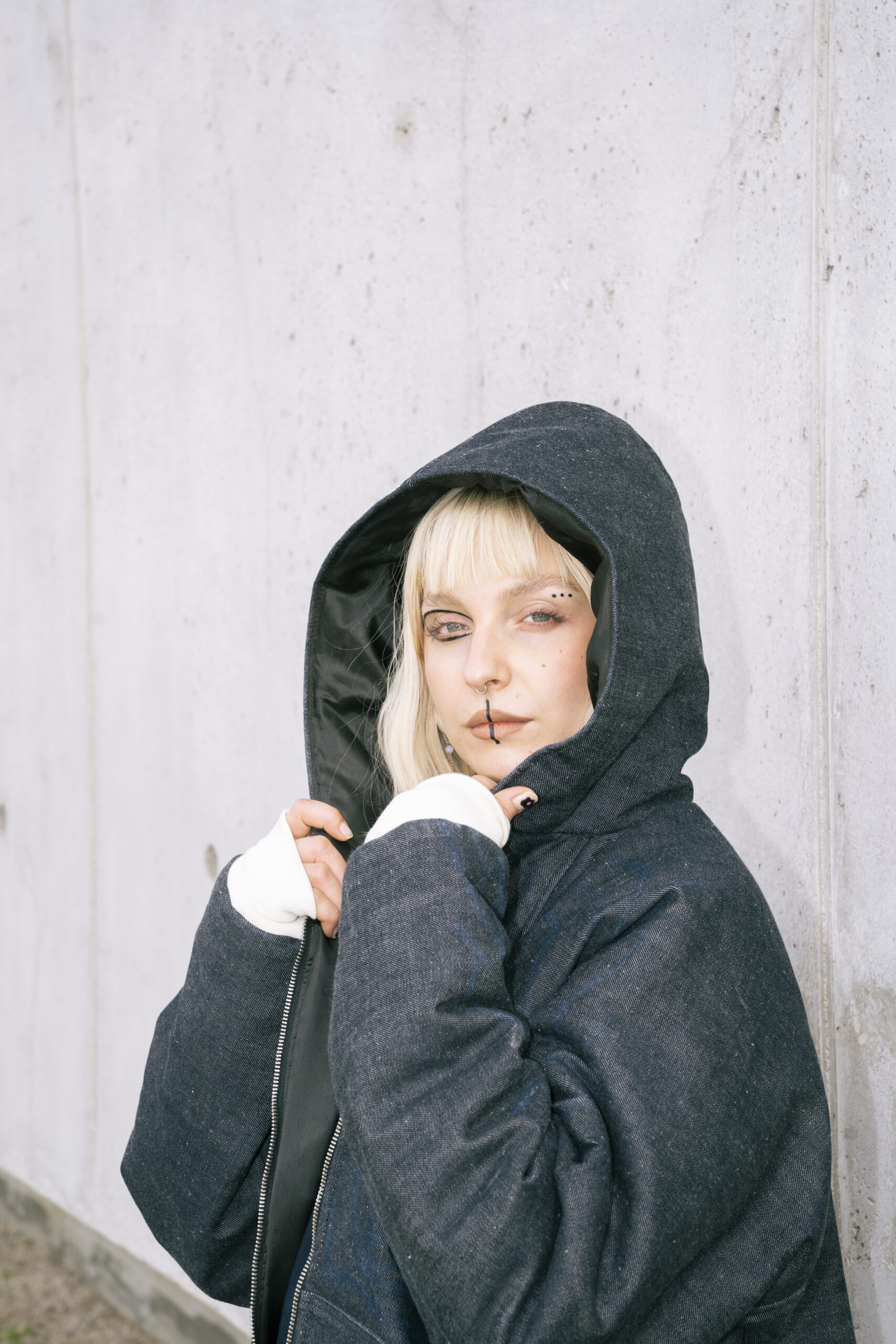 La chiusura frontale full zip, il cannolè sul fondo e sui polsini, e il cappuccio imbottito contribuiscono a definire una silhouette funzionale e contemporanea, pensata per la vita quotidiana ma costruita con l’attenzione e la precisione proprie dell’artigianato italiano.
