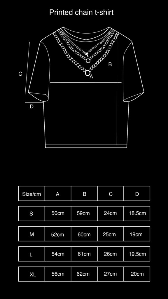 ITA: Un capo che eleva la semplicità della t-shirt a manifesto di identità e libertà creativa. La Printed Chain T-Shirt nasce dall’incontro tra estetica urbana e precisione sartoriale, fondendo l’immediatezza del linguaggio street con la cura e la qualità tipiche della manifattura italiana.