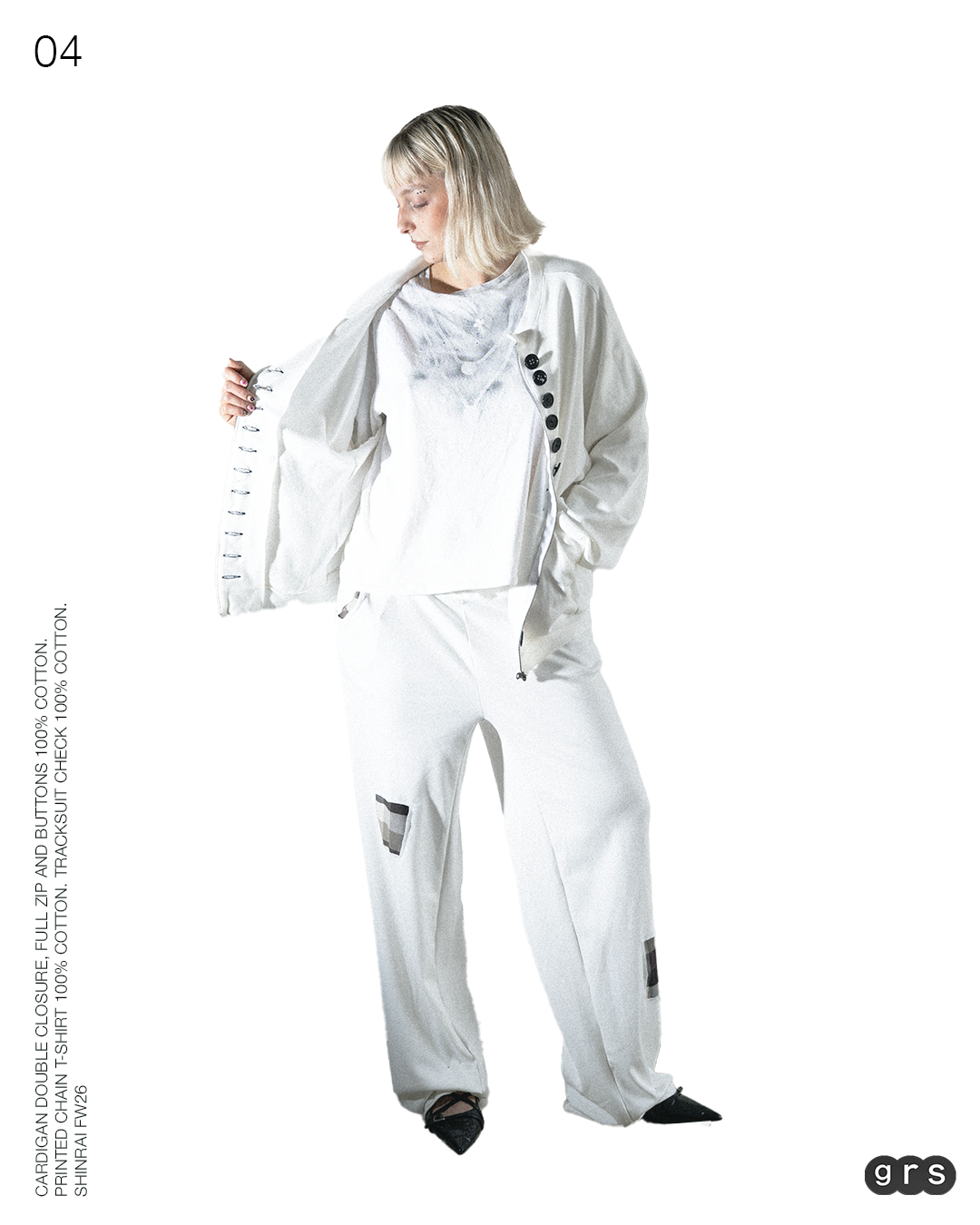 Made from 100% premium cotton, the fabric offers a compact yet soft structure, designed to ensure comfort, durability, and a refined hand. The graffiti-inspired chain print runs across the garment like a spontaneous, powerful gesture — a symbol of connection, strength, and belonging, reinterpreted through the lens of contemporary art.