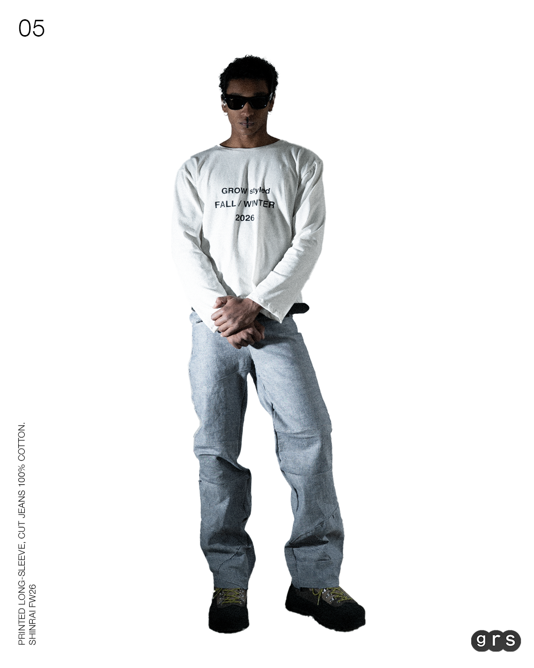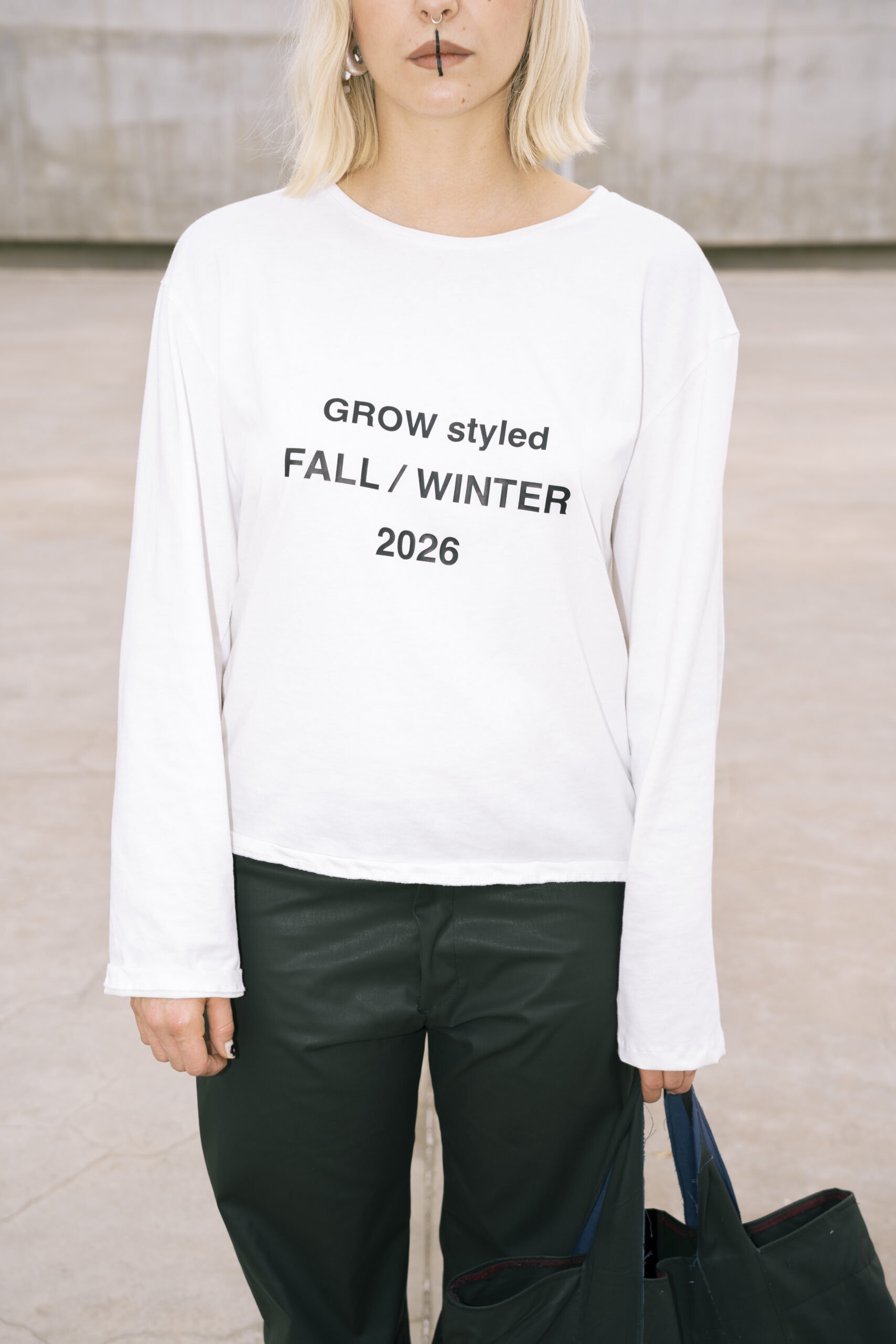ENG: A piece that pays homage to the legacy of contemporary design, reinterpreting with personal sensitivity an icon of fashion culture. The Printed Long-Sleeve draws inspiration from the emblematic Comme des Garçons T-shirt — a symbol of conceptual clarity and visual identity that has long guided our creative research.